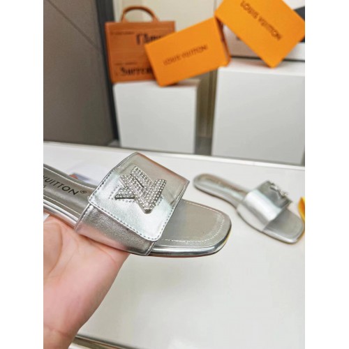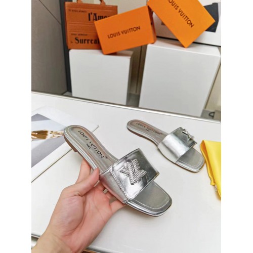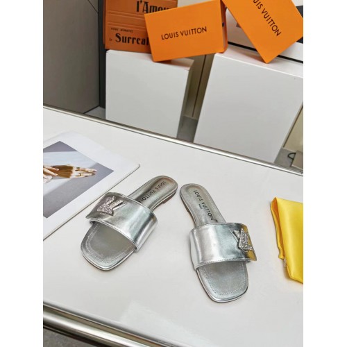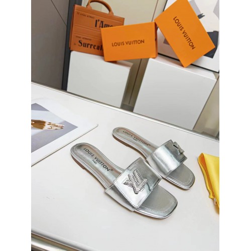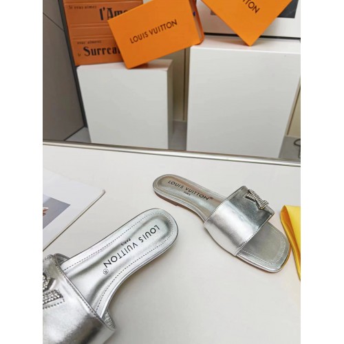 Louis Vuitton Shake Flat Mules In Silver Metallic Lambskin