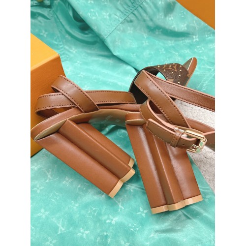 This reinterpretation of the Silhouette sandal combines calf leather with Monogram canvas. The front..