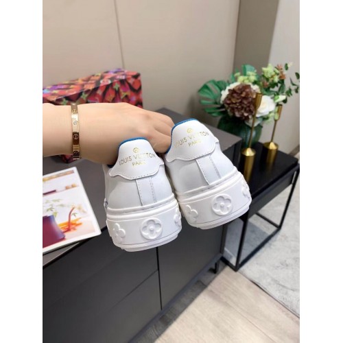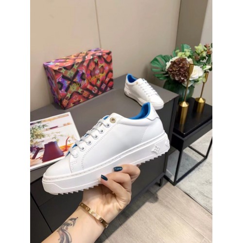 Louis Vuitton White Time Out Sneakers with Blue Outsole