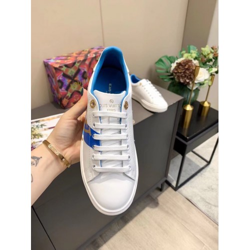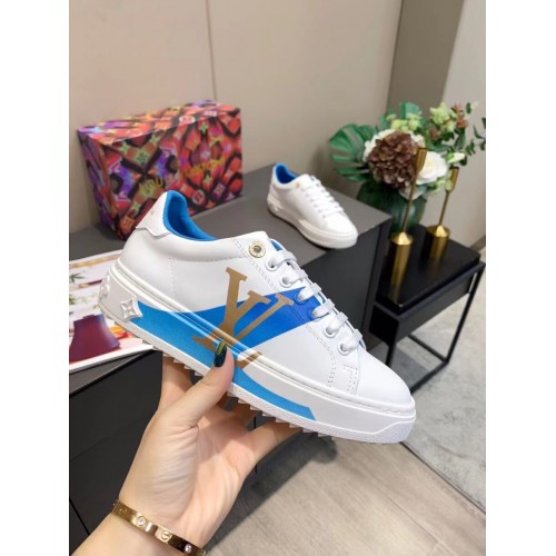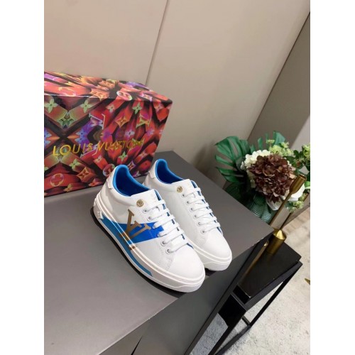 Louis Vuitton White Time Out Sneakers with Blue Printed
