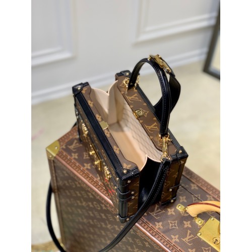 Every detail of the Petite Malle handbag is inspired by the history of Louis Vuitton trunks: the sha..